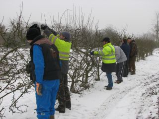 Nous avons eu le plaisir d'accueillir des courageux malgré la neige et le froid pour découvrir la taille fruitière.
